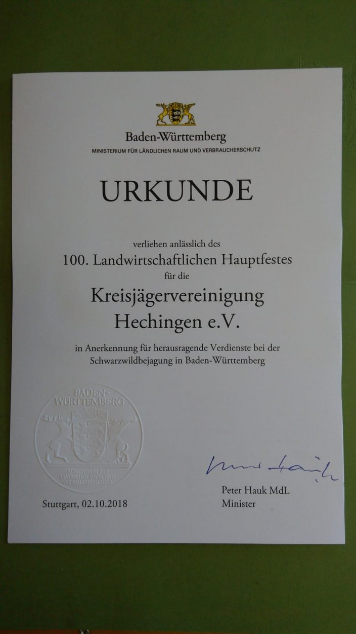 Landwirtschaftminister Peter Hauk nahm diesen Rekord zum Anlass, auf dem Landwirtschaftlichen Hauptfest Jägervereinigungen