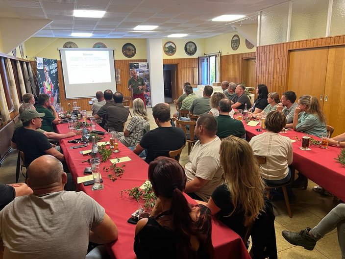 Wie verhalte ich mich vor, während und nach dem Schuss? Diese Frage stellte der anerkannte Nachsucheführer Uwe Steckroth den zahlreichen anwesenden Jägerinnen und Jägern beim Infoabend "Auf der roten Fährte". In seinem kurzweiligen Vortrag erklärte er aus der Sicht des Nachsucheführers, auf was es ankommt. Welche Pirschzeichen sind zu finden und wie können Jäger und Nachsucheführer das "Puzzle" lösen.