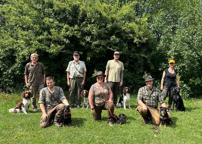 Herzliche Glückwunsch und ein kräftiges Waidmannsheil den sieben Hundeführern mit ihren treuen Jagdbegleitern zur bestandenen Brauchbarkeitsprüfung 2023. Unter schwierigen Wetterbedingungen wurden am Sonntag Morgen zuerst die Schweißfähren ausgearbeitet. Auch die folgenden Prüfungen zum Beispiel zur Standruhe und Gehorsam meisterten die Gespanne.