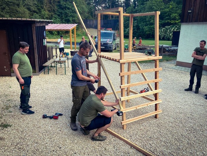 Die AG Junge Jäger hat beim letzten Stammtisch das Projekt Hochsitzbau gestartet. Zusammen unter Anleitung eines erfahrenen Jägers wurde ein Hochsitz gebaut. Außerdem wurde erneut besprochen wie Bockgehörne abgekocht werden und dies auch gleich geübt.